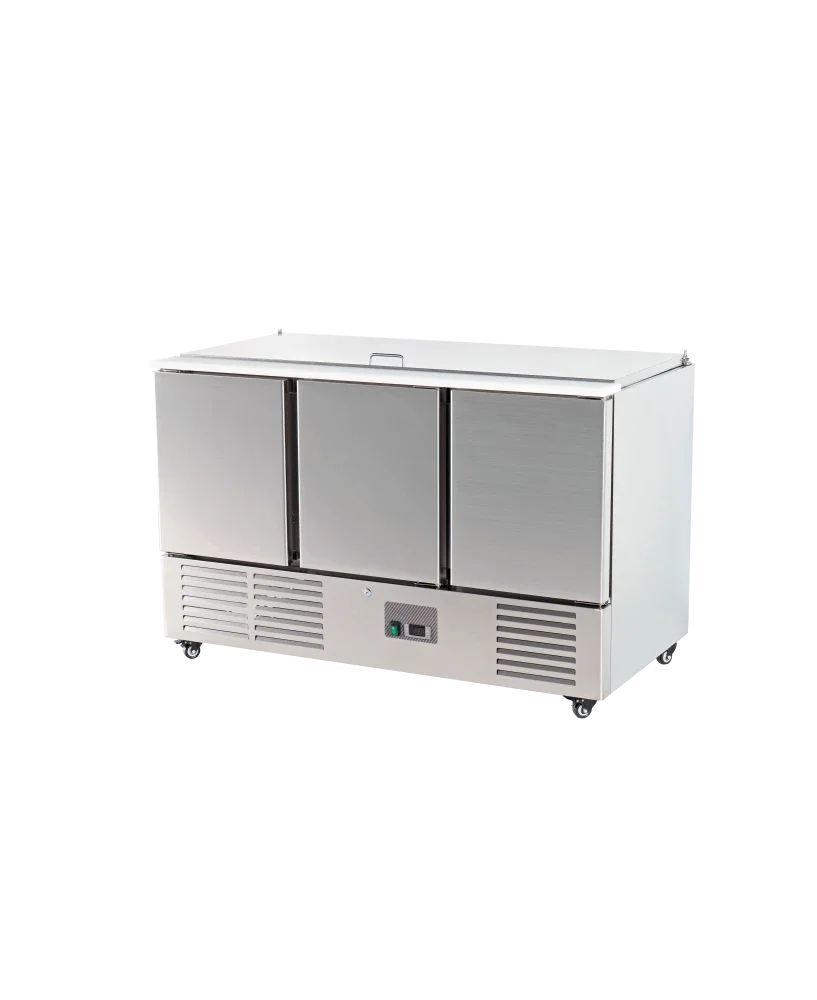 Saladette réfrigérée 3 portes avec Plan de travail en polyéthylène et compartiments GN