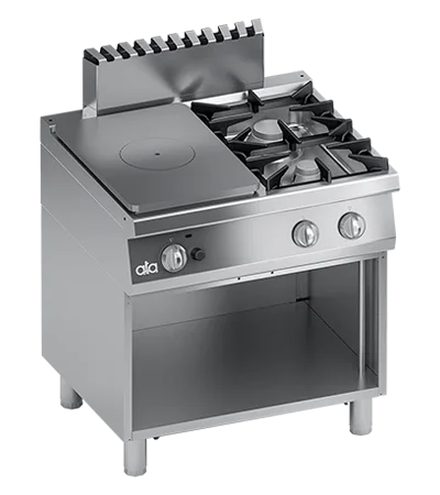 FOURNEAU 2 BRULEURS GAZ + COUP DE FEU GAZ + BAIE OUVERTE