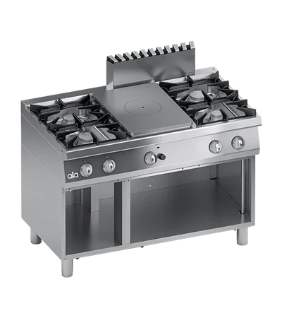 FOURNEAU 4 BRULEURS GAZ + COUP DE FEU GAZ + BAIE OUVERTE