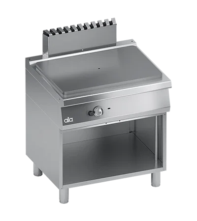 Surface de cuisson en fonte épaisse à bords arrondis réalisée en moulage unique. Insert rond central amovible.