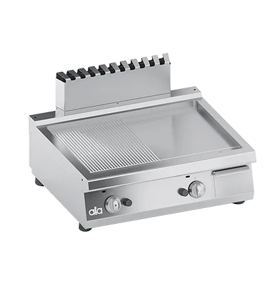 GRILLADE A GAZ AVEC PLAQUE EN INOX 1/2 LISSE 1/2 NERVURÉE A POSER 800