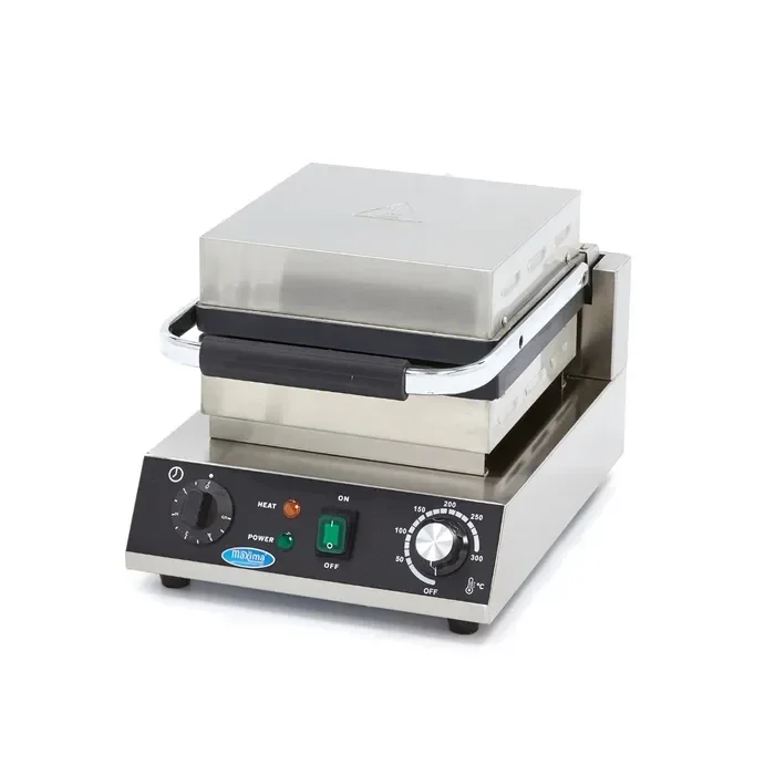 Ce gaufrier de haute qualité pour la restauration a une forme classique qui convient à la préparation de gaufres belges. Grâce à la commande thermostatique conviviale, vous pouvez choisir n'importe quelle température entre 50 et 300ºC. Vous pouvez rapidement et facilement préparer deux gaufres en même temps. Le voyant orange s'allume pour indiquer que les plaques chauffent. Dès que le voyant s'éteint, vous pouvez commencer à cuisiner. Le minuteur vous permet de vous assurer que vos gaufres ne brûlent pas, mais qu'elles ont juste le bon degré de croustillant et de couleur. Les plaques en aluminium sont dotées d'un revêtement antiadhésif pour que les gaufres ressortent parfaitement.
